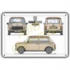 The three-view illustration highlights its fender extensions, additional headlights and famous rally livery in a neat pattern with colours faithful to the Monte Carlo model. The metal backing gives it a truly vintage and authentic look.