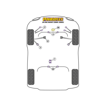 Sur la vue schématique, les numéros affichés correspondent aux emplacements des silentblocs sur votre voiture et aux options disponibles dans la sélection.