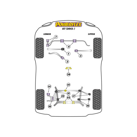 Sur la vue schématique, les numéros affichés correspondent aux emplacements des silentblocs sur votre voiture et aux options disponibles dans la sélection.
