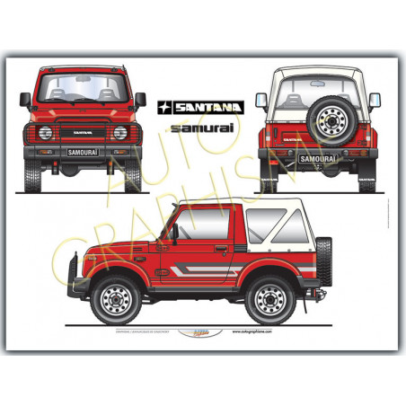 Mostra la tua passione per i fuoristrada leggeri e robusti con questo poster dedicato alla Suzuki Santana Samurai 1.3L, piccolo fuoristrada agile che ha conquistato sia i sentieri che le città. Compatto, affidabile e pronto per l'avventura, è diventato una vera icona.